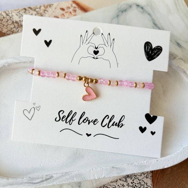 Pulsera elástica de bolitas de vidrio diferenciadas, combinadas con rocas de cristal, piezas pasantes de CCB y dije pasante con forma de corazón.